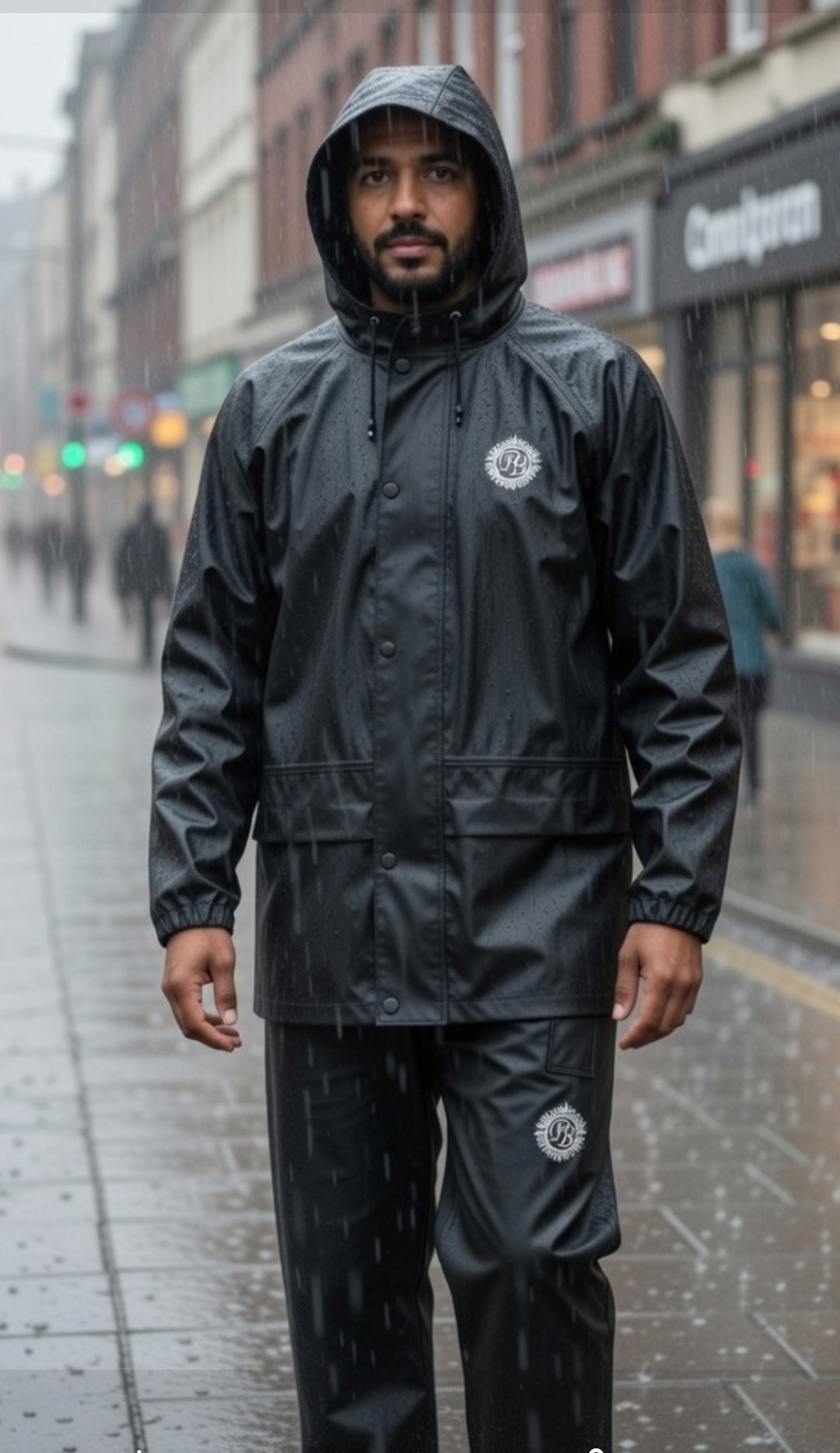 Rubber rain suit.